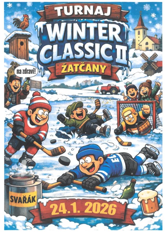 Žatčanští fotbalisté zvou všechny příznivce ledního hokeje na II. ročník hokejového turnaje, který se uskuteční na našem rybníku v sobotu 24. ledna 2026 od 9:00 do 16:00 hodin.